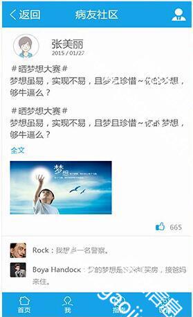 9、病友社區(qū):和微信打通形成移動(dòng)端的社區(qū)交流平臺(tái)。