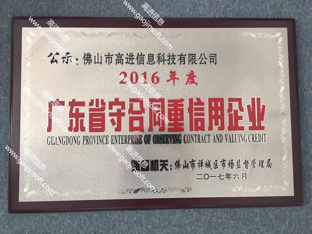 喜訊!我司榮獲2016年“重合同守信用”榮譽(yù)稱號