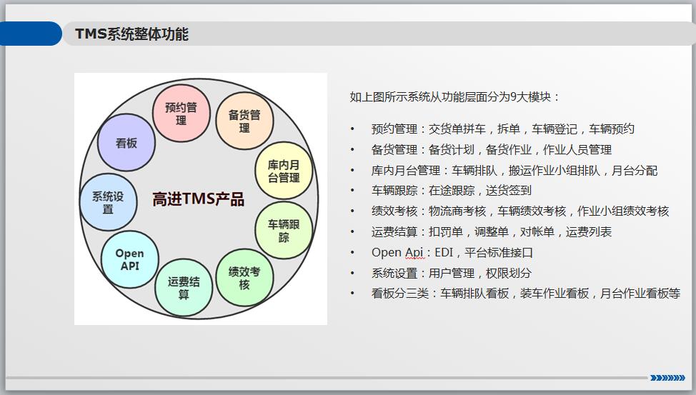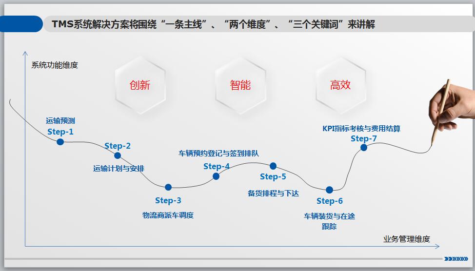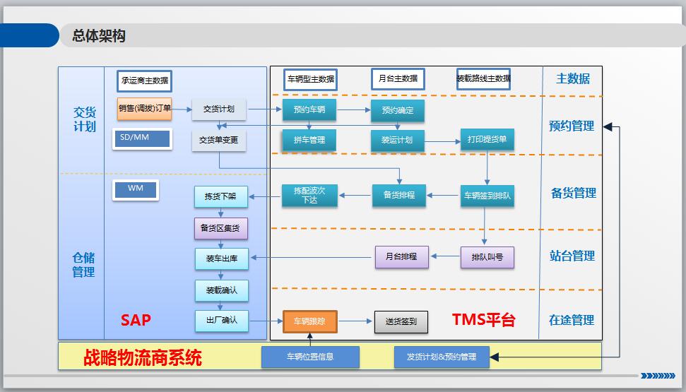 依據(jù)物流構(gòu)想,借助功能完善及軟件集合建立TMS運(yùn)輸管理系統(tǒng),使用訂單執(zhí)行監(jiān)控形成完整的信息流。通過多種方法和其他相關(guān)的操作一起提高物流的管理能力;包括管理裝運(yùn)單位,指定企業(yè)內(nèi)、外的發(fā)貨計劃,管理運(yùn)輸模型、基準(zhǔn)和費用,維護(hù)運(yùn)輸數(shù)據(jù),生成提單,優(yōu)化運(yùn)輸計劃,選擇承運(yùn)人及服務(wù)方式,招標(biāo)和投標(biāo),審計和支付貨運(yùn)賬單,處理貨損索賠,安排勞力和場所,管理文件和管理第三方物流。